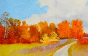 Paul Gauguin once said, “Art is abstraction. Abstract it from nature while dreaming in front of it.” The landscape has long captured my imagination. It is in the peace and tranquility of open spaces, expansive skies, woodlands and old farms that I find inspiration. My paintings are a search to capture the spatial essence, patterns and textures of the natural places I’ve encountered. Through bold color and expressive brushwork, my paintings are intended to create a visual dialogue with viewers, eliciting recollections of familiar places equally special to them. Each painting is an original oil painting executed on either stretched double oil primed linen canvas or linen panel and archivally framed.